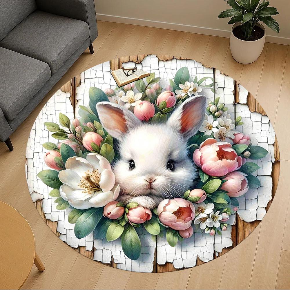1pc Rabbit Flowers Round Chair Mat Office Area Rug - Non-Slip, Floor Mat for Office, Bedroom, Ideal Home Decor Gift C0112082