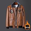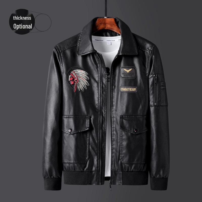 Men's Plus Size Embroidered Leather Baseball Jacket with Velvet, Trendy Spring & Autumn Outerwear.
