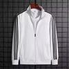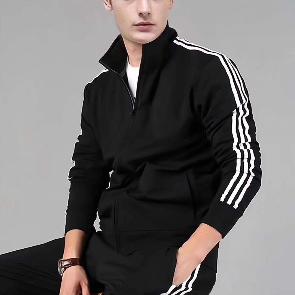 Elevate your casual wardrobe with this stylish men's hoodie, featuring a modern three-stripe design. This long-sleeve jacket is crafted from lightweight, stain-resistant polyester fabric, making it both practical and good-looking. The stand-collar adds a touch of sophistication while offering comfort and versatility. Its thin outerwear thickness makes it perfect for layering in cooler weather, and the striped pattern adds a trendy flair to any outfit. Ideal for the fashion-conscious man seeking a combination of style and durability.