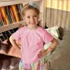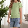 Girls' Short Sleeved T-shirt With Ribbed Knit Texture Top, Cute, Fashionable Soft And Comfortable