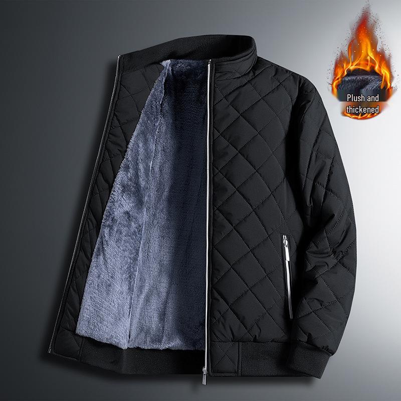 This stylish winter jacket for men is crafted with a solid color design and features a quilted pattern, making it both fashionable and practical for cold weather. The stand collar adds a sleek touch, providing extra warmth and protection against the elements. The jacket's exterior is made from high-quality polyester material, ensuring durability and resistance to the winter chill. Inside, it is lined with soft velvet, offering a luxurious feel and additional comfort. The jacket's fur-like details are made from polyester fiber, adding an extra layer of insulation to keep you cozy during the colder months. Whether for casual outings or more formal events, this jacket is designed to keep you warm while maintaining a sophisticated look.