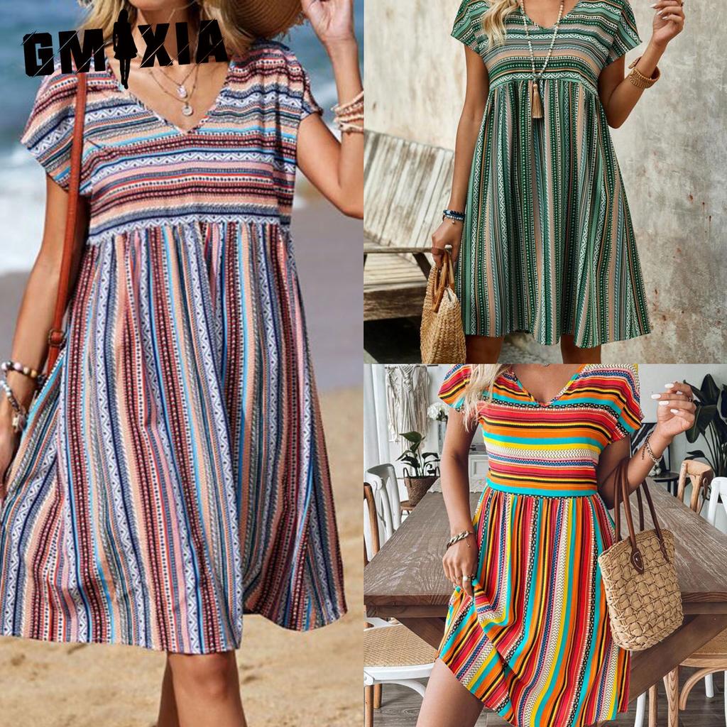 GMXIA Women's Fashion Summer Spring Short Sleeve V-Neck Casual Dresses