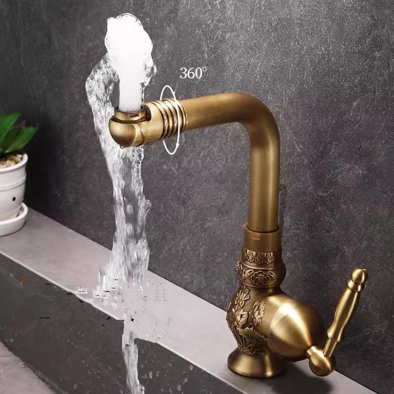 Antique Carved Bathroom Faucet Brass Basin Faucets Hot & Cold Bathroom Sink Faucet Deck Mounted Lavotory Faucet Mixer Water Tap