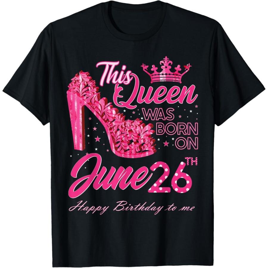 This Queen Was Born On June 26 High Heels June 26th Birthday T-Shirt(1)