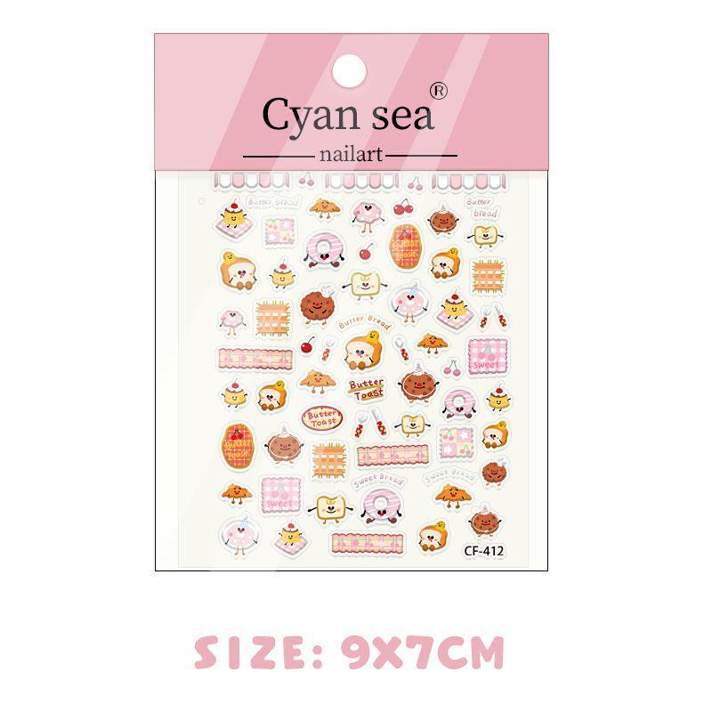 Butterbread 3D Embossed Cake Nail Art Stickers - Cute, Glue-Free DIY Decoration