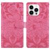 For iPhone 16 Pro Max Leather Case Imprinted Floral Pattern Wallet Stand Flip Phone Cover