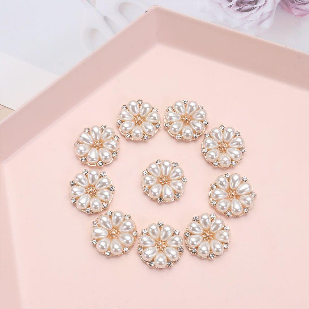 10PCS DIY Craft Flower-shaped Crystal Rhinestone Buttons Pearl Hairpins Pearl Button Headwear Clip