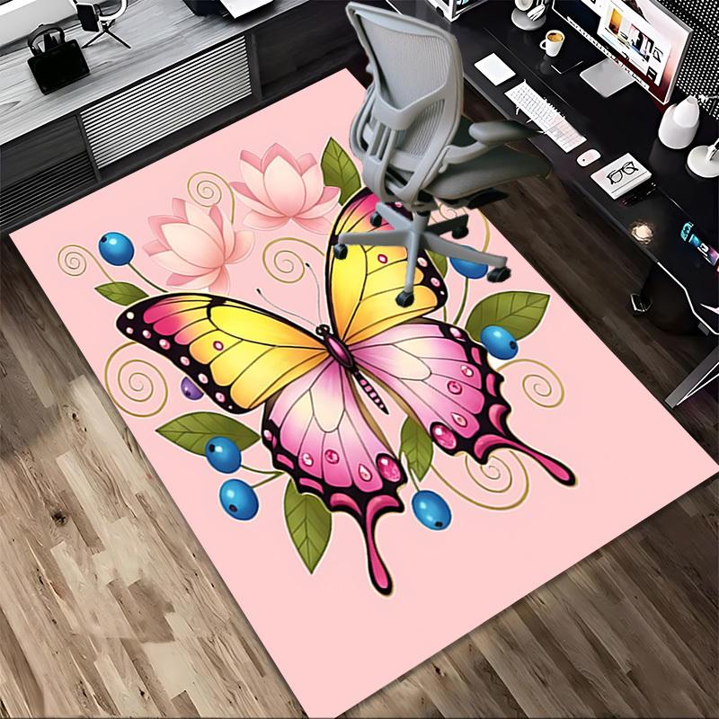 Butterfly Flowers Pattern Area Rug, Office Carpet Indoor Outdoor Entrance Doormat, Non-Slip Soft And Comfortable, Living Room, C122057