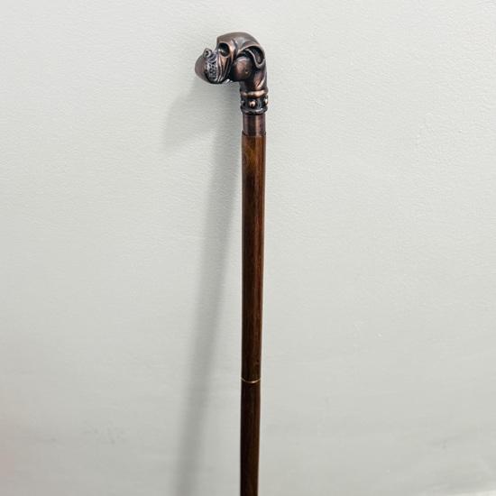 Walking Stick Vintage Designer Aluminum Bulldog Face Handle Victorian Wooden Cane London Seller