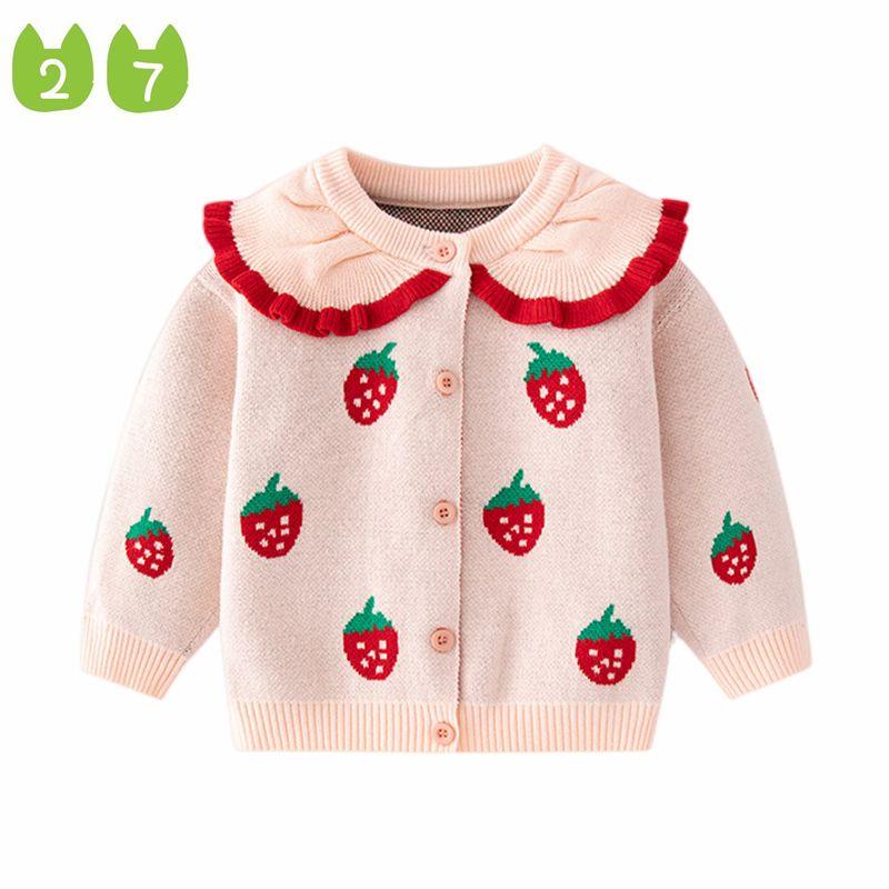 Spring and Autumn Strawberry Girl Round Neck Lace Kids Pure Cotton Cardigan Coat Sweater Baby Girl Single Breasted Knitwear