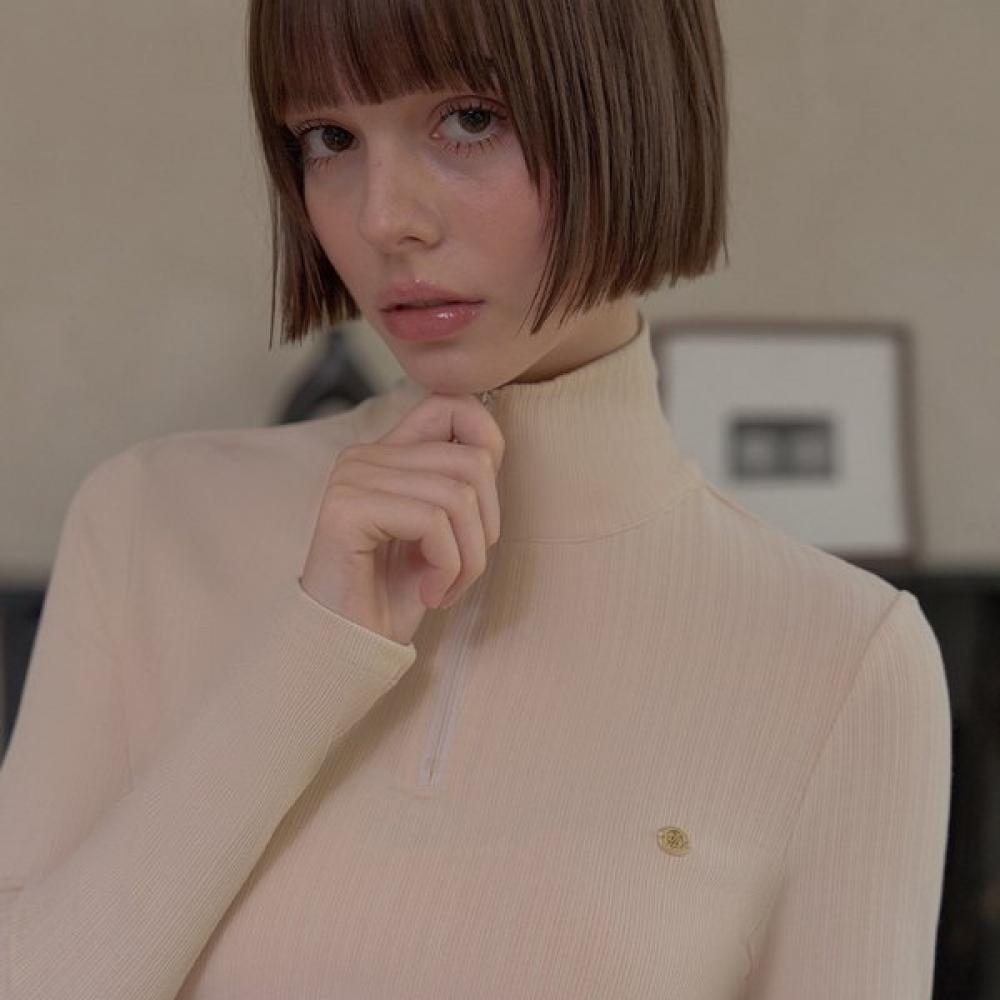 The Playboo Fleece Ribbed Half-Zip Top in Ivory features excellent stretchability with ribbed jersey fabric, providing a comfortable and warm wearing experience.