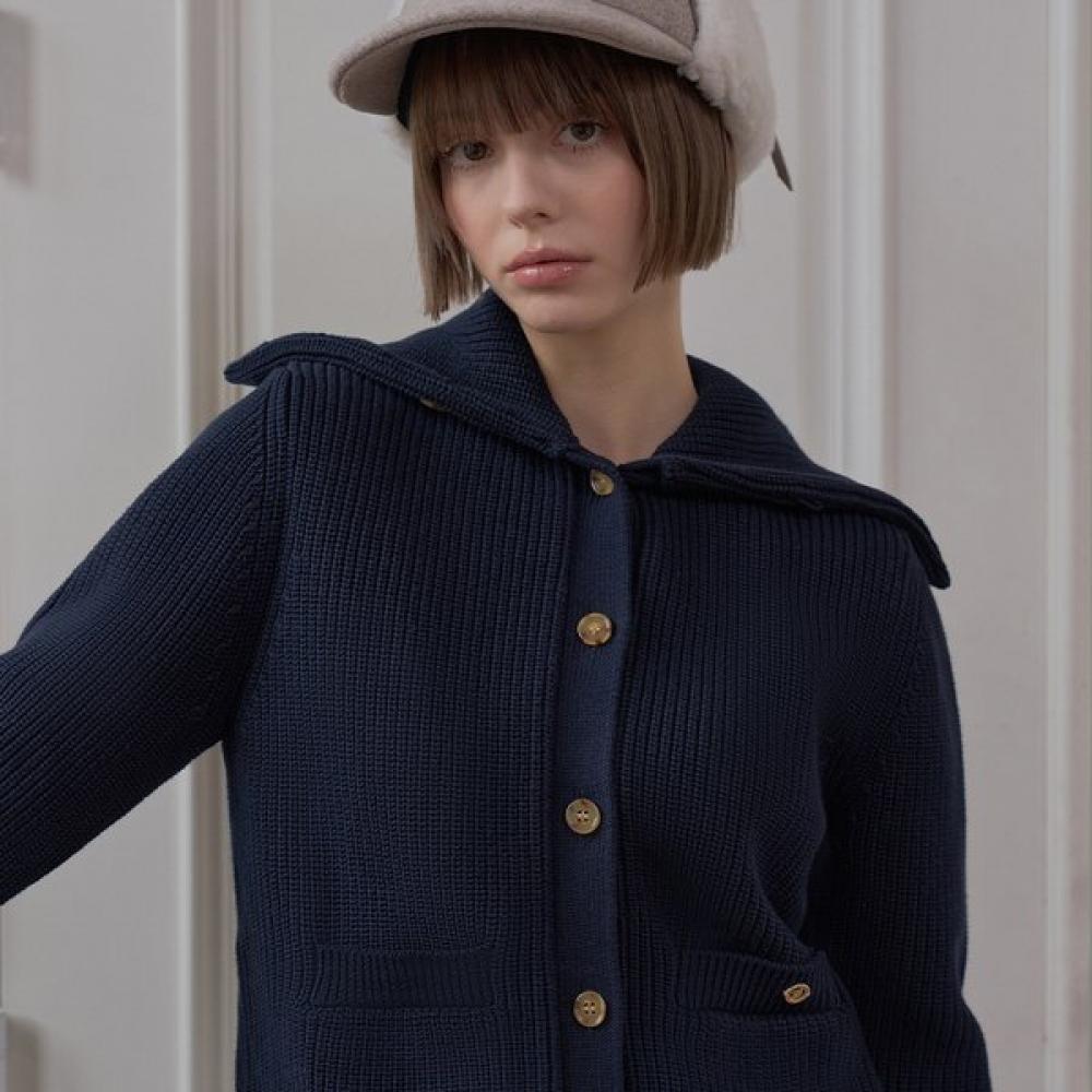 PLAYBOO Windproof Spread Collar Cardigan Dark Navy