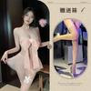 Pink Bow Three-point Erotic Underwear Pure Desire Temptation Splicing Mesh Perspective Free-to-take Set