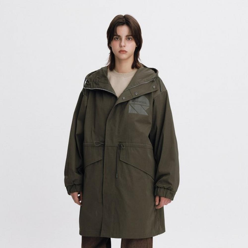 The KANGOL Fish Tail Parka 9014 in khaki is a lightweight windbreaker and is an officially imported genuine product. It features a hood and a casual design accentuated with printed logos. Suitable for use in the transitional seasons with a basic length and long sleeves.