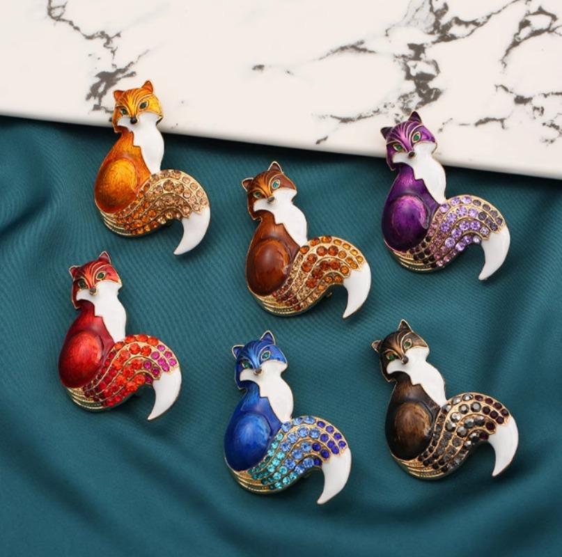 1Pcs Foxes Brooch Cartoon Animal Lapel Pins Corsage for Women Versatile Shiny Corsage Clothing Accessories Gifts