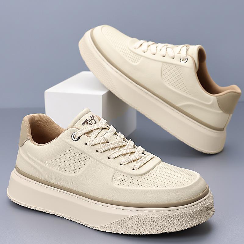 Spring and Summer New Men's Shoes Platform Men's Board Shoes White Shoes Breathable Punching Fashion Driving Shoes