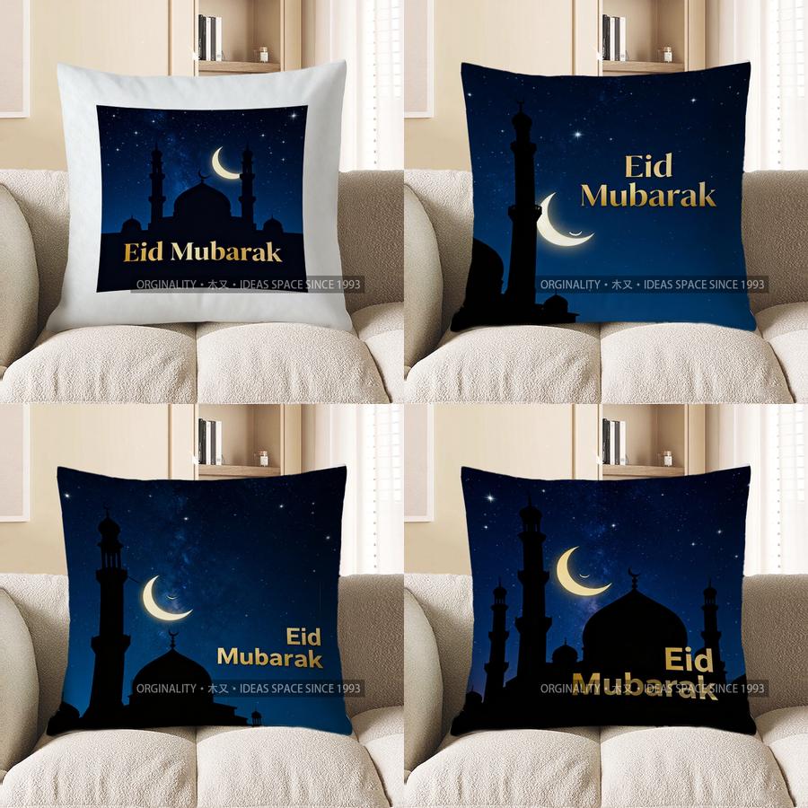 2D Eid Mubarak: Night Sky With Mosque Design Pattern Cushion Cover Suitable For Sofa Bedroom Car Pillow Cover