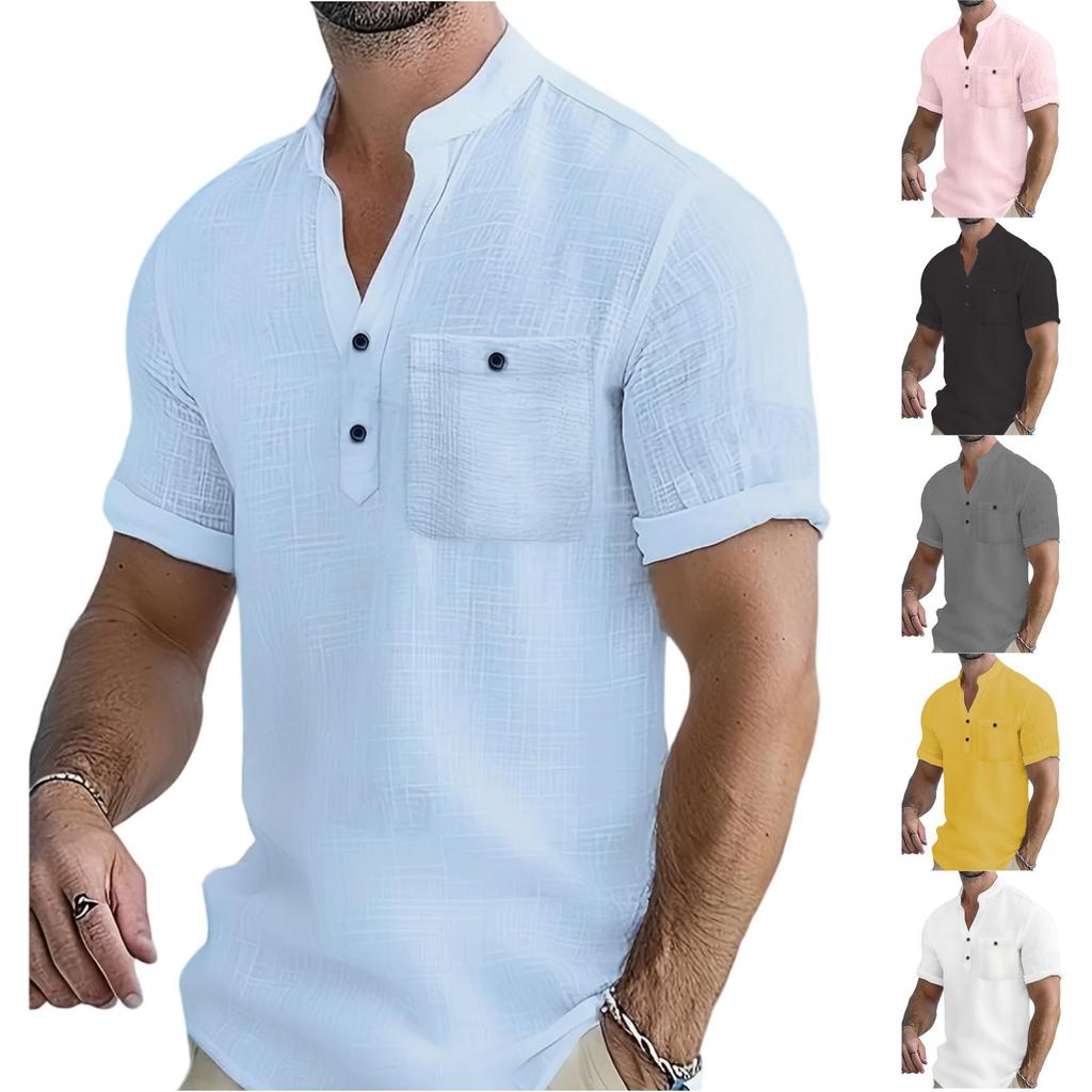 Men's Casual -color Lightweight Sports T-shirt - Men's Linen Short-sleeved Shirt