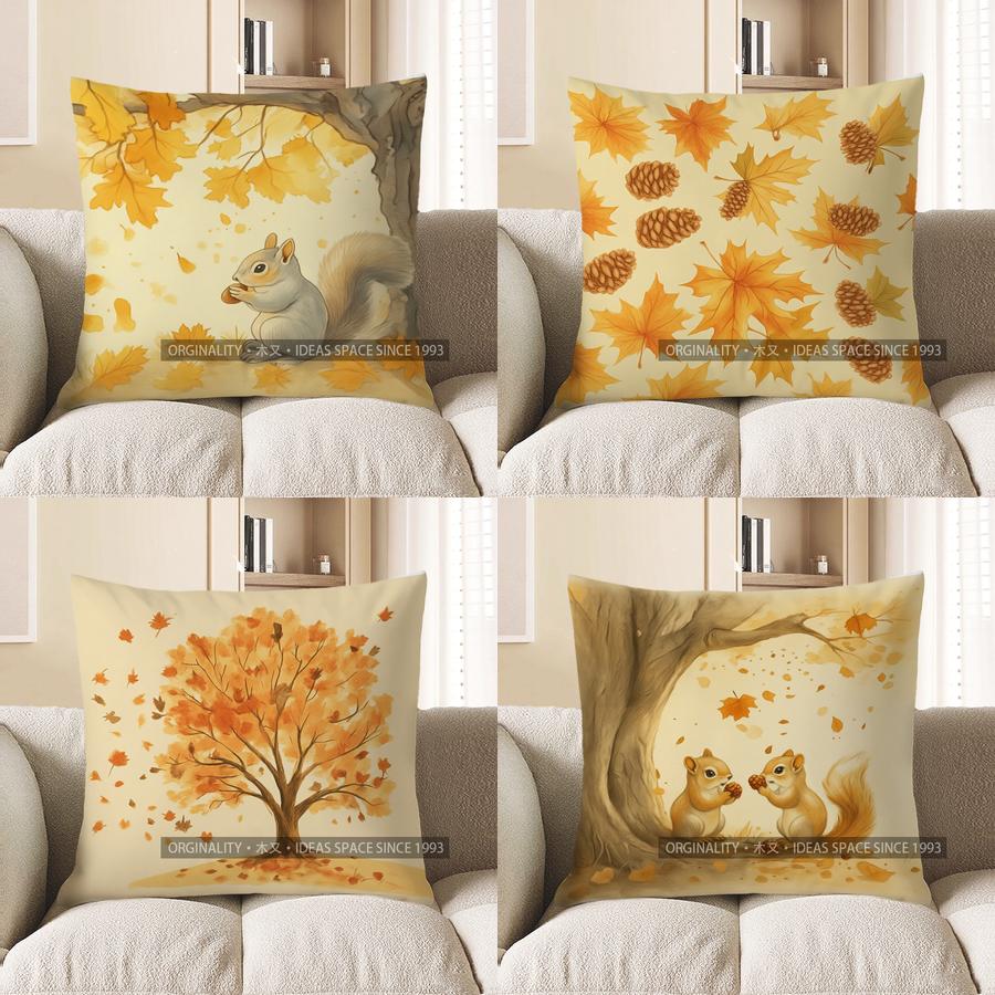 Home Decor Squirrel With Autumn Leaves Decorative Pillow Pattern Cushion Cover Suitable For Sofa Bedroom Car Pillow Cover