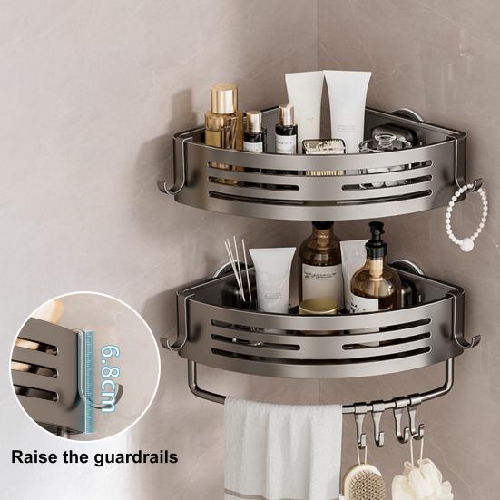 Suction Cup Corner Shelf Shower Caddy Adjustable Bathroom Organizer No Drilling Triangle Corner with Towel Bar