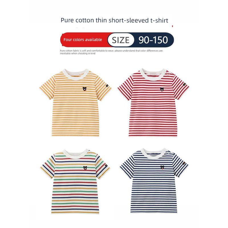 New Summer Children's Striped T-Shirt, Boys' and Girls' Pure Cotton Short-Sleeve Shirt, Thin Half-Sleeve Shirt for Babies and Older Children