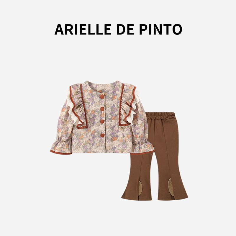 French Arielle De Pinto Girls' Suit Autumn New Style Sweet Lace Flared Pants Two-Piece Set for Girls