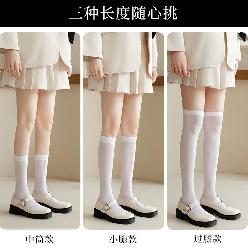 Velvet Calf Socks Women'S Black And White Summer Ultra-Thin Long Knee Socks Solid Color Japanese Jk Socks One Piece Hair