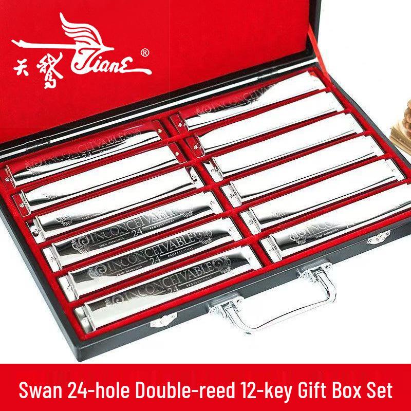 Swan 24-Hole Harmonica Set: 7-Piece and 12-Piece Options, ABCDEFG Keys, for Students and Adults, Beginner Wind Instrument.