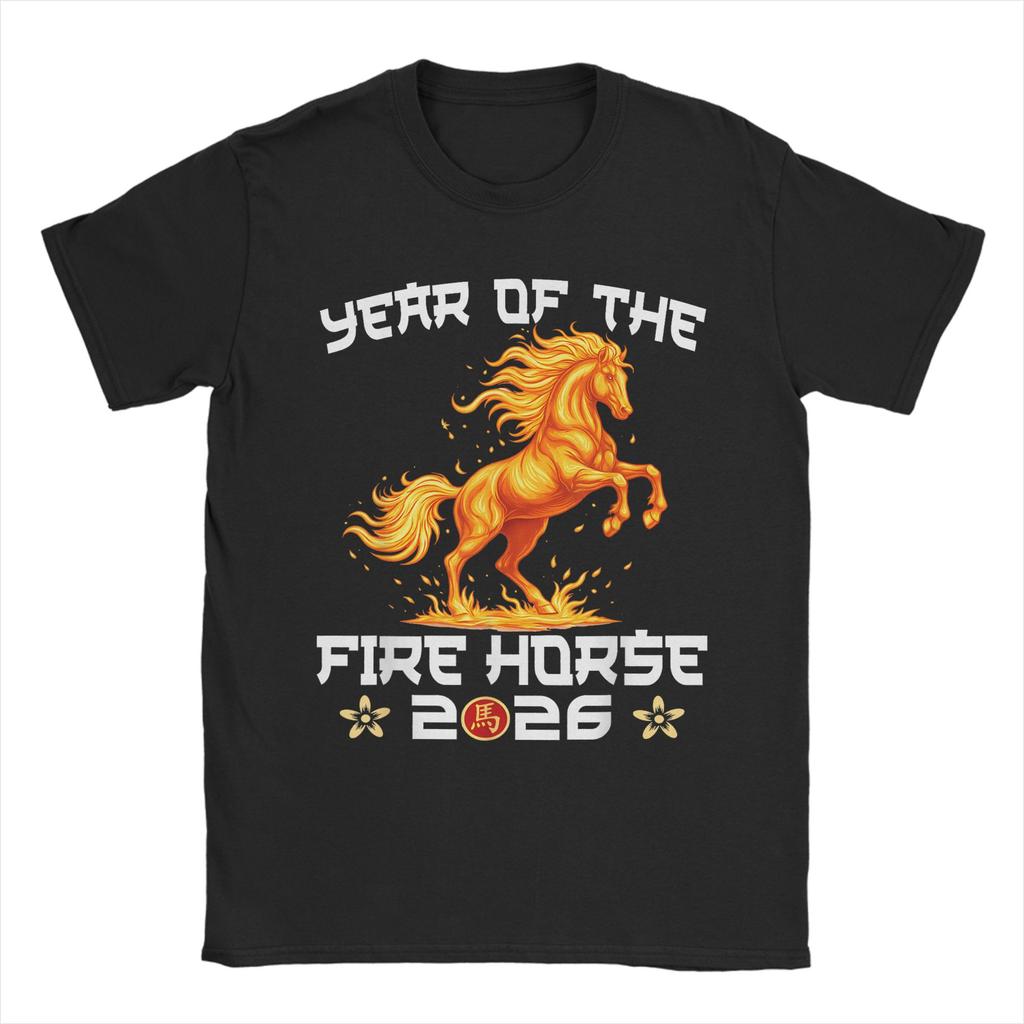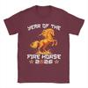 Mens TShirt Year of The Fire Horse New Year 2026 Zodiac Horse Pure Cotton Tees Short Sleeve T Shirts O Neck Tops Unique