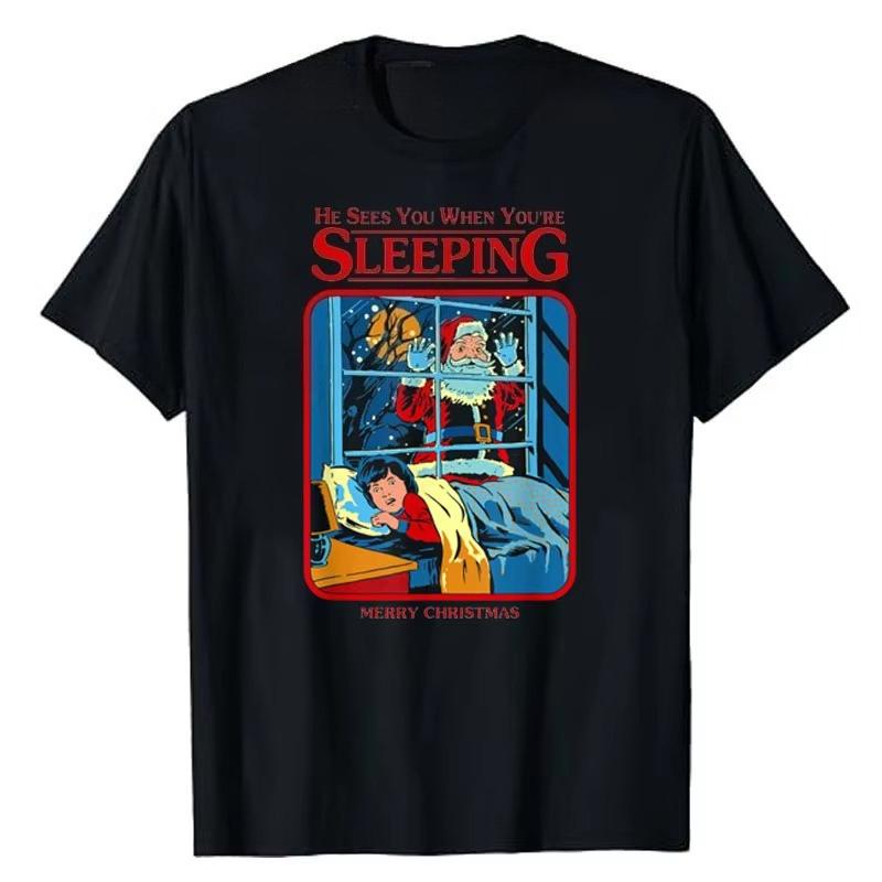 He Sees You When Youre Sleeping Merry Christmas TShirt Mens Fashion Daddy Husband Christmas Costume Gift Funny Top