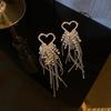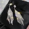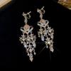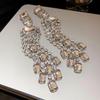 Silver Needle Diamond Flower Water Drop Tassel Earrings Exaggerated Earrings Light Luxury Premium Earrings Women