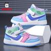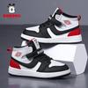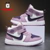 2025 New Girls' High-Top Leather AJ Sneakers: Autumn/Winter Cotton Shoes for Middle-Aged Children