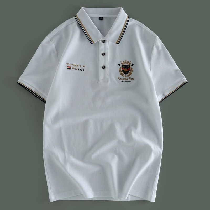 Foreign Trade Cut the Tag Off Tail Goods Summer High End Embroidery Pearl Cotton Polo Shirt Men's Business Leisure Lapel Short Sleeve T-shirt