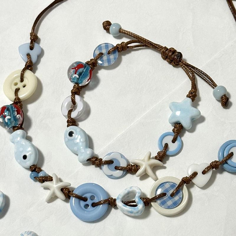 Boho Ceramic Beaded Bracelet, Woven Fish Star Design Holiday Style Jewelry Accessories for Women