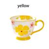 1pcs Flower Ceramic Mug Heat-resistant Breakfast Milk Oat Cup Hand Drawn Large Capacity Juice Handle Cup Microwave Safe 450ml