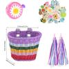 4pcs Hand-Woven Bicycle Basket with Bell Tassel Stickers Adjustable Bike Handlebar Carrier Basket Cycling Accessories