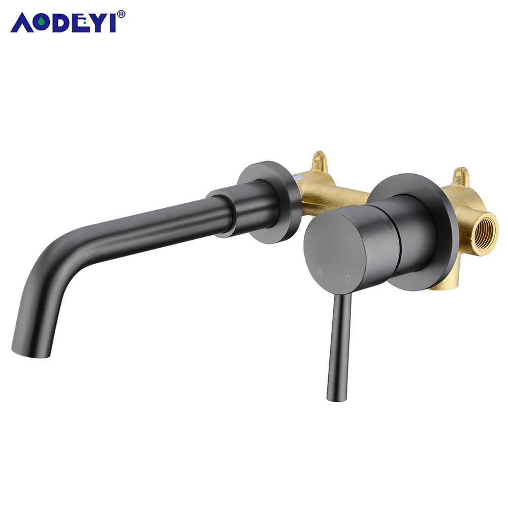 Gun Grey Mixer Hot Cold Water Tap Single Hole Swivel Spout Bath Single Lever Handle Wall Mounted Bathroom Brass Sink Faucet Taps