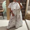 2026 Sexy Lapel Single-breasted Shirt Top + Wide-leg Pants 2-piece Set Women Fashion Solid Color Elegant Casual Hollow Suit Female