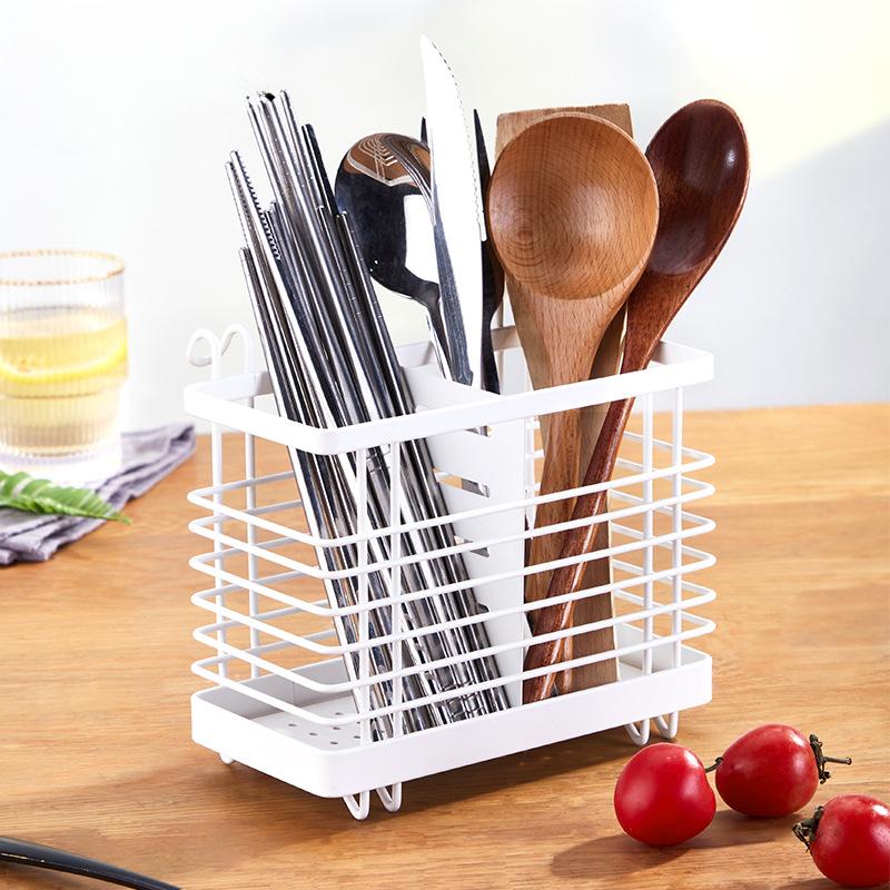 Hanging Kitchen Cutlery Holder Sink Caddie Cutlery Drainer Stainless Steel Kitchen Caddie Spoon and Fork Chopstick Organizer
