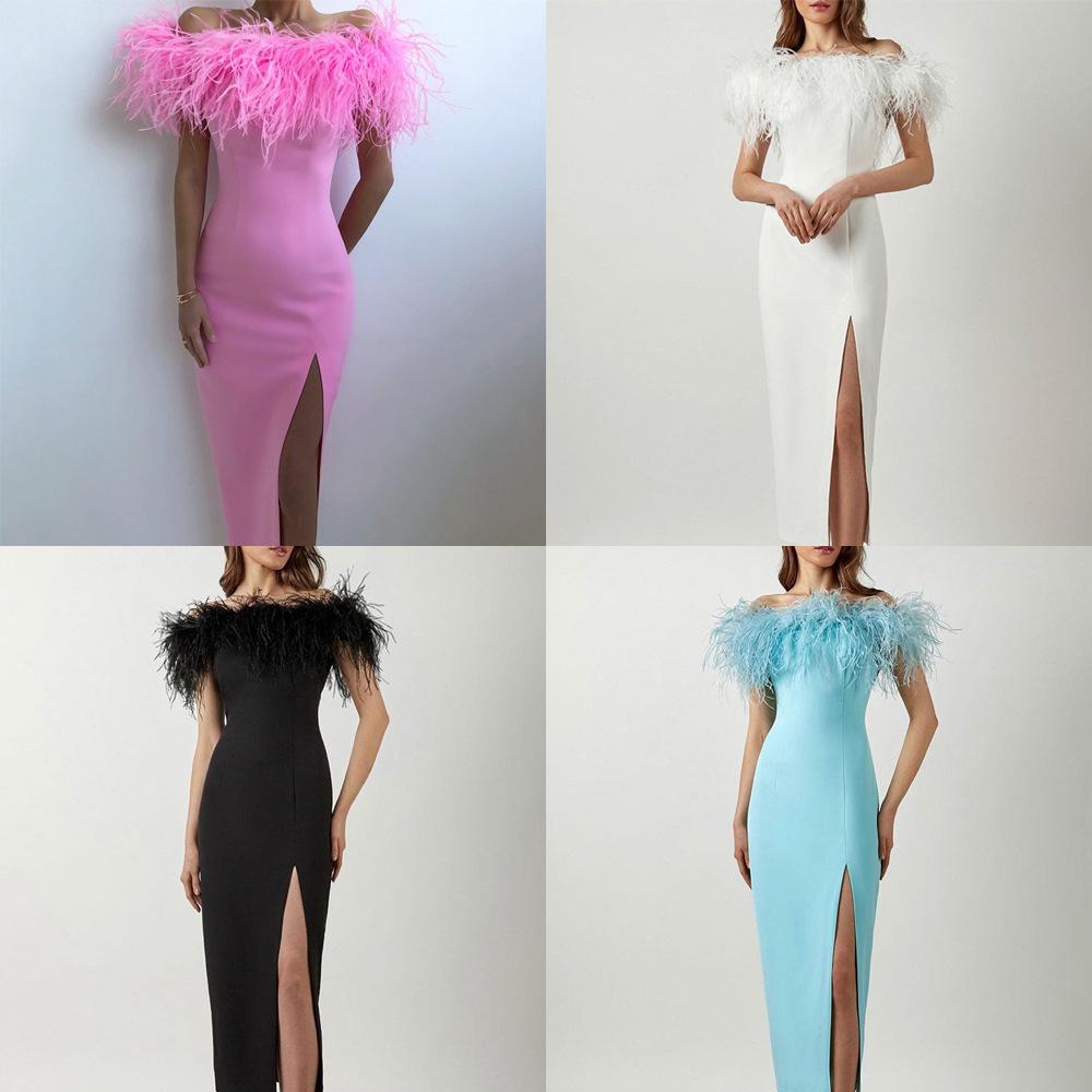 Spring and Summer New European and American Women's Clothing One-word Shoulder Evening Dress Feathers Socialite Dress Banquet Temperament Long Dress