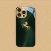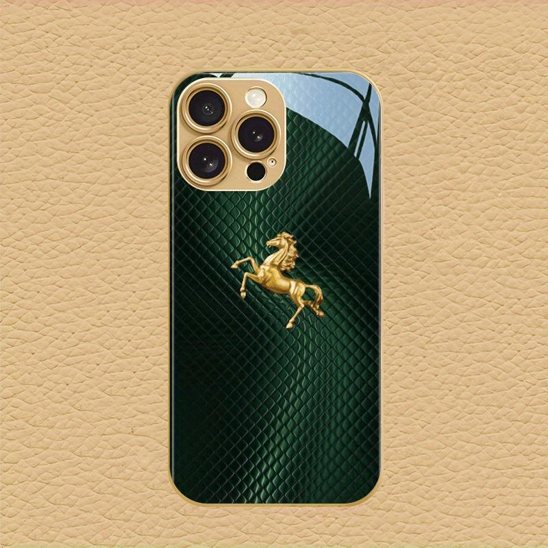 Green Plaid Gold Horse Pattern Metallic Paint Glass Phone Case For iPhone 17 16 15 14 13 12 11 Pro Max 15 Plus 17 Air 16E Cover
