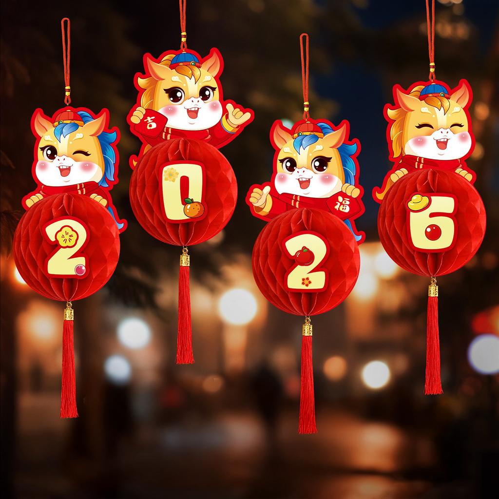 10/4pcs Red Lanterns Decoration Chinese New Year Hanging Ornaments Spring Festival Decoration Year of The Horse Accessories