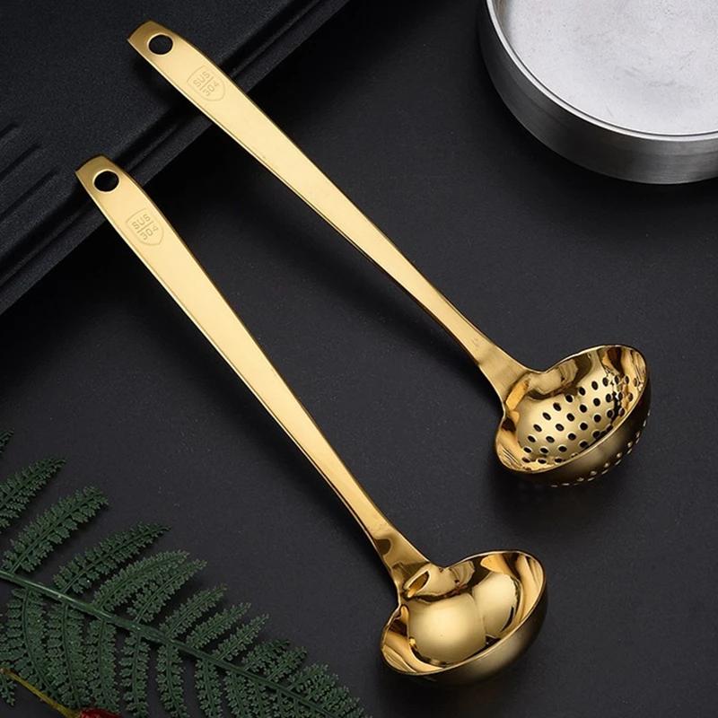 Golden 304 Stainless Steel Soup Ladle Ramen Spoon Skimmer Kitchen Tablespoons Colander New Cooking Utensils