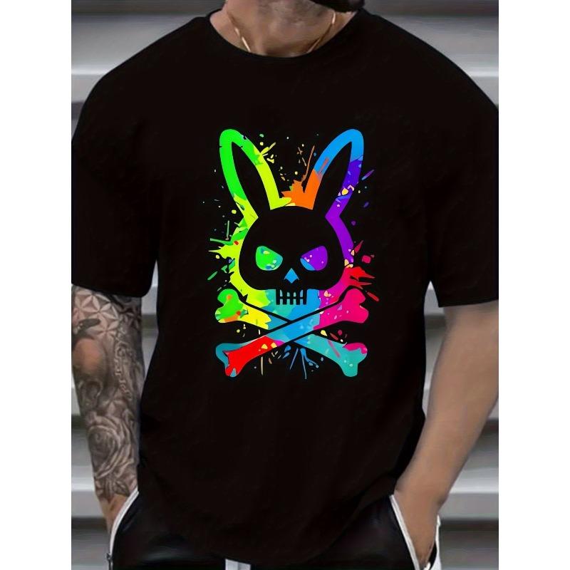 European Sizes Men's Colorful Skeleton Rabbit Pattern T-shirt Round Collar Short Sleeve Design Summer Casual Wear Soft Breathable Men's Clothing