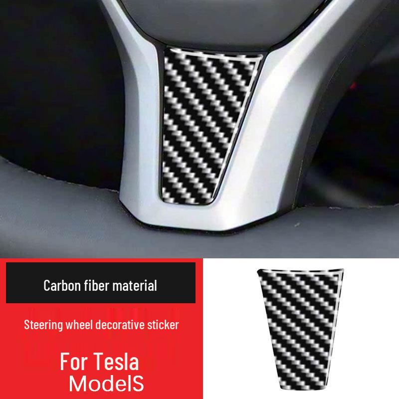 Tesla Carbon Fiber Steering Wheel Sticker: Interior Sport Accessory