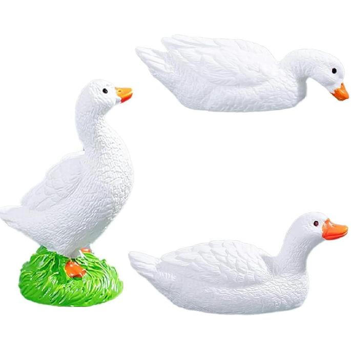 3 Pcs Mini Duck & Goose Figurines - Resin Fairy Garden Decor, Aquarium Fish Tank Accessories, Micro Landscape Moss Terrarium DIY Crafts, Home