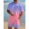 Gradient Print Men's Short Sleeve Shorts Set Hawaiian Men's Fashion Set Summer Men's Casual T-shirt Outdoor Beach Men's Shorts