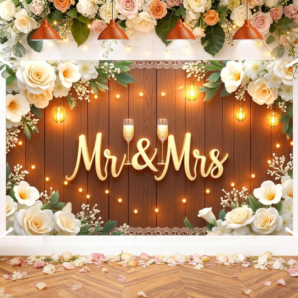 Mr & Mrs Wedding Backdrop Banner Party Decorations Engaged Banner Photo Booth Props Wedding Shower Party Decoration for Reception Bridal Shower
