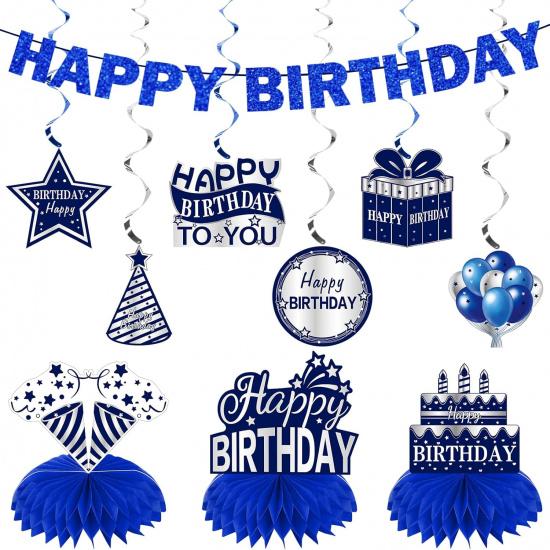 11Pcs Happy Birthday Decorations Kit for Men, Blue Sliver Happy Birthday Banner, Awesome Since Glitter Banner Party Supplies, Bday Decor Centerpieces