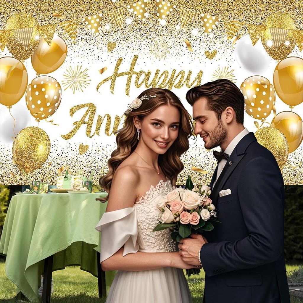 White Gold Happy Wedding Anniversary Banner for 5 10 15 20 25 30 40 50 for Couple, Happy Anniversary Decorations, Surprise for Parents Cheers To